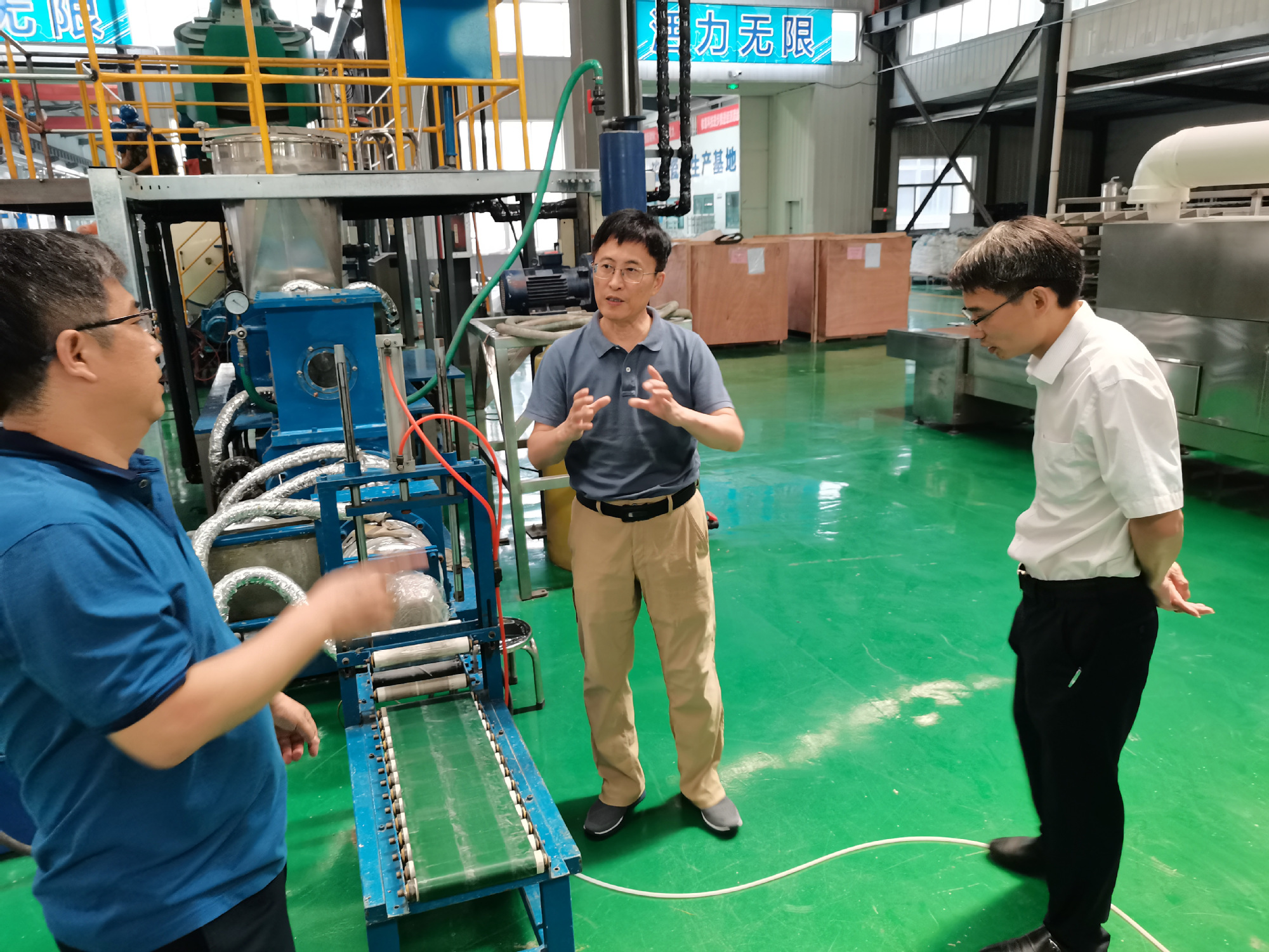 在公司董事长郭健和总经理陈雷的陪同下,李光辉教授等一行人员参观了公司的研发测试中心以及一期、二期生产车间,详细调研了公司的研发产品进展、生产过程以及发展规划。随后,就365英国上市集团和赛利科膜公司的项目合作展开了深入探讨,就开展大项目研发达成了合作意向。