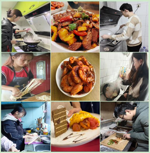 本科生党员刘在伟同学则亲自动手为父母烹饪可口的饭菜,他说:“烹饪需要耐心与细心,这锻炼了我的严谨与专注,让我明白做好任何事情都需要用心,为家人做饭还能感受亲情与责任、传递爱与感激。”