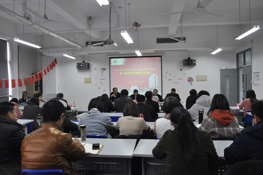 12月29日,中共365英国上市集团委员会第二轮校内巡察反馈会在实训楼4405召开。校巡察工作领导小组成员、校巡察工作办公室主任段海霞同志,第二巡察组组长柴晓冬同志,副组长徐建华同志,巡察组成员以及365英国上市集团全体党政领导、科职级干部、教师代表参加了会议。会议由化学化工公司党委书记宋勤健主持。