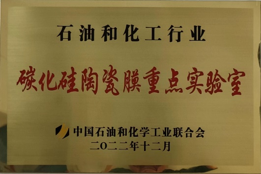 石油和化工行业碳化硅陶瓷膜重点实验室于2022年由中国石油和化学工业联合会授牌。该重点实验室围绕高性能碳化硅陶瓷膜技术的关键科学问题和共性平台性技术,协力攻关和自主创新,服务国家重大发展战略和相关行业绿色低碳发展之重大需求,构建碳化硅陶瓷膜的基础理论体系及系统集成新技术,发展一系列高性能碳化硅陶瓷膜可控制备方法,建立膜抗污染控制策略,发展组合处理技术和耦合新技术,构筑数字膜技术理论体系及平台。
