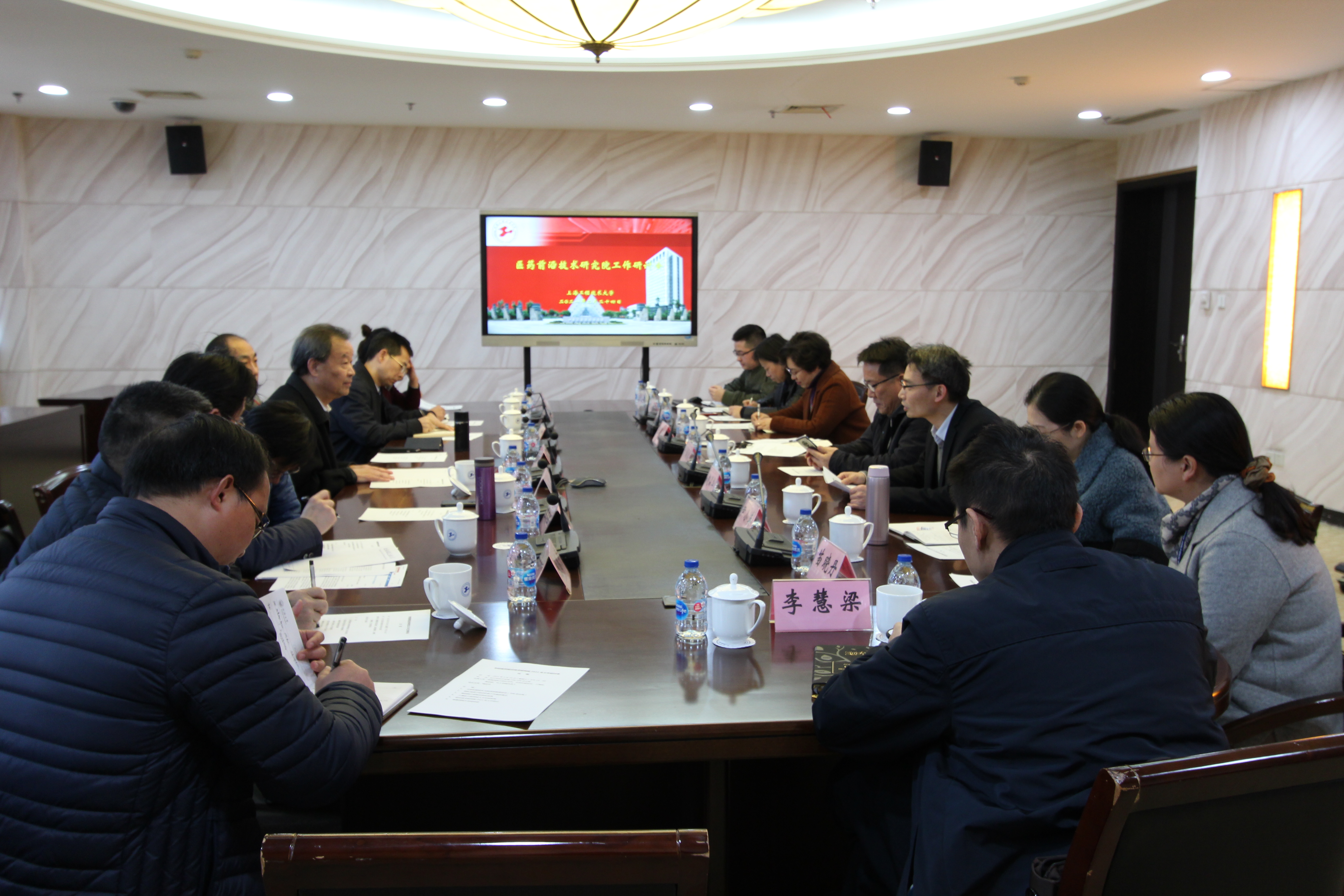 2月24日下午,公司医药前沿技术研究院在行政楼208召开2021年度工作研讨会。智能制剂团队负责人、中国工程院院士侯惠民、海军军医大学张卫东教授、复旦大学陆伟跃教授、药物制剂国家工程研究中心主任王健、公司人事处处长刘福窑、365英国上市集团经理饶品华、高研院常务副经理陈思浩以及智能制剂团队全体成员出席研讨会。会议由化工公司经理饶品华主持。