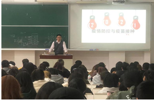 动员大会上,辅导员张晓普首先就全球及国内疫情防控概况向同学们做了解说,又结合实际案例向同学们说明了做好常态化疫情防控的重要意义,着重强调了每日体温测量上报工作和进出校园、离返上海申请的相关要求。之后,他又就第二轮新冠肺炎疫苗接种工作做了动员,不仅为同学们详尽的讲解了接种新冠肺炎疫苗的重要意义,动员大家积极参加;还就少数同学对新冠肺炎疫苗存在的疑问进行了解答,重点向同学们讲解了国产新冠病毒灭活疫苗的安全性和有效性、不适合接种新冠疫苗的具体类型以及接种新冠疫苗前后需要注意的事项。他还就预约接种的具体操作方法现场做了示范。