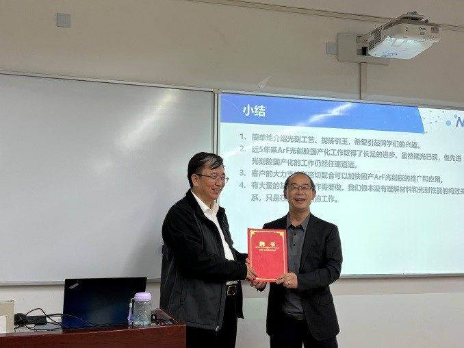 为了让员工对行业的前沿技术有一个深度的了解,并进一步推进校企合作,提供更多的教育资源与机会,11月15日下午,365英国上市集团微纳制造先进材料研究团队负责人孙韬教授邀请行业专家――江苏南大光电材料股份有限公司副总裁许从应教授,为公司“集成电路专项班”的研究生们,讲述了一场关于“集成电路光刻前沿技术”的特色教学。
