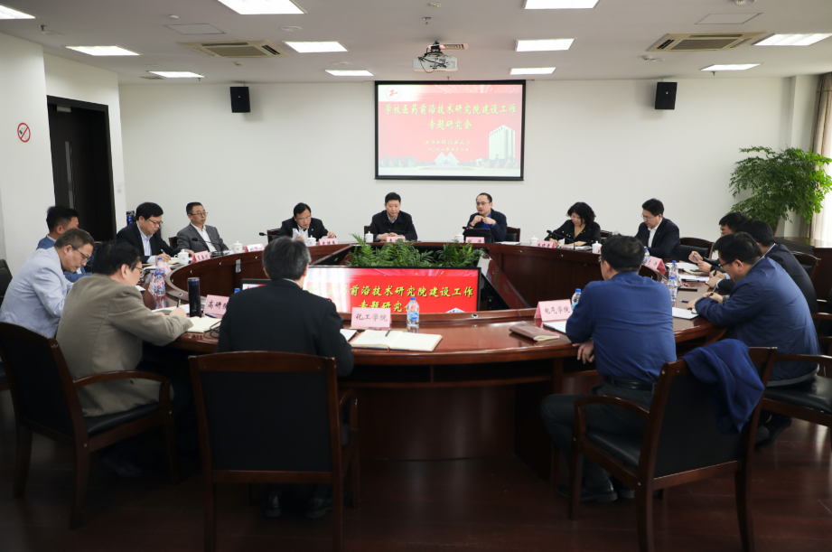 4月2日下午,公司召开医药前沿技术研究院建设工作校领导专题研究会。公司党委书记李江,党委副书记、董事长俞涛,党委副书记、工会主席史健勇,党委副书记、副董事长朱晓青,副董事长姚秀平、王岩松、夏春明出席会议。会议由俞涛董事长主持。