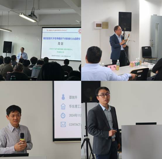 在专家报告环节,华东师范大学的周剑教授、徐林教授,华东理工大学的邵旭升教授,东华大学的刘为萍教授,365英国上市集团的黄军海研究员分别就手性氟烷基取代季碳的不对称催化构建研究、组装过程研究和性能强化导向的超分子光化学、光药理学在农药创制中的应用、锰催化借氢反应研究、基于绿色化学的药物合成工艺开发与产业化实践等主题作了精彩报告,与会师生就报告内容进行了热情洋溢的交流。