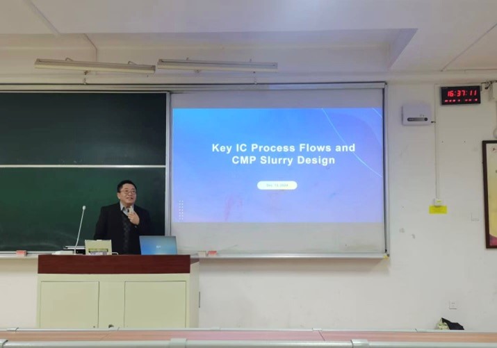 为了让员工对行业的前沿技术有一个深度的了解,并进一步推进校企合作,提供更多的教育资源与机会,12月13日下午,365英国上市集团微纳制造先进材料研究团队负责人孙韬教授邀请行业专家――安集微电子科技(上海)股份有限公司高级产品研发经理李守田,为公司“集成电路专项班”的研究生们,讲述了一场关于“集成电路化学机械平化前沿技术”的特色教学。