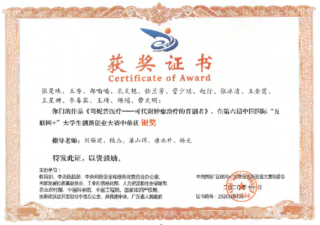 2020年第六届中国国际“互联网+”老员工创新创业大赛银奖