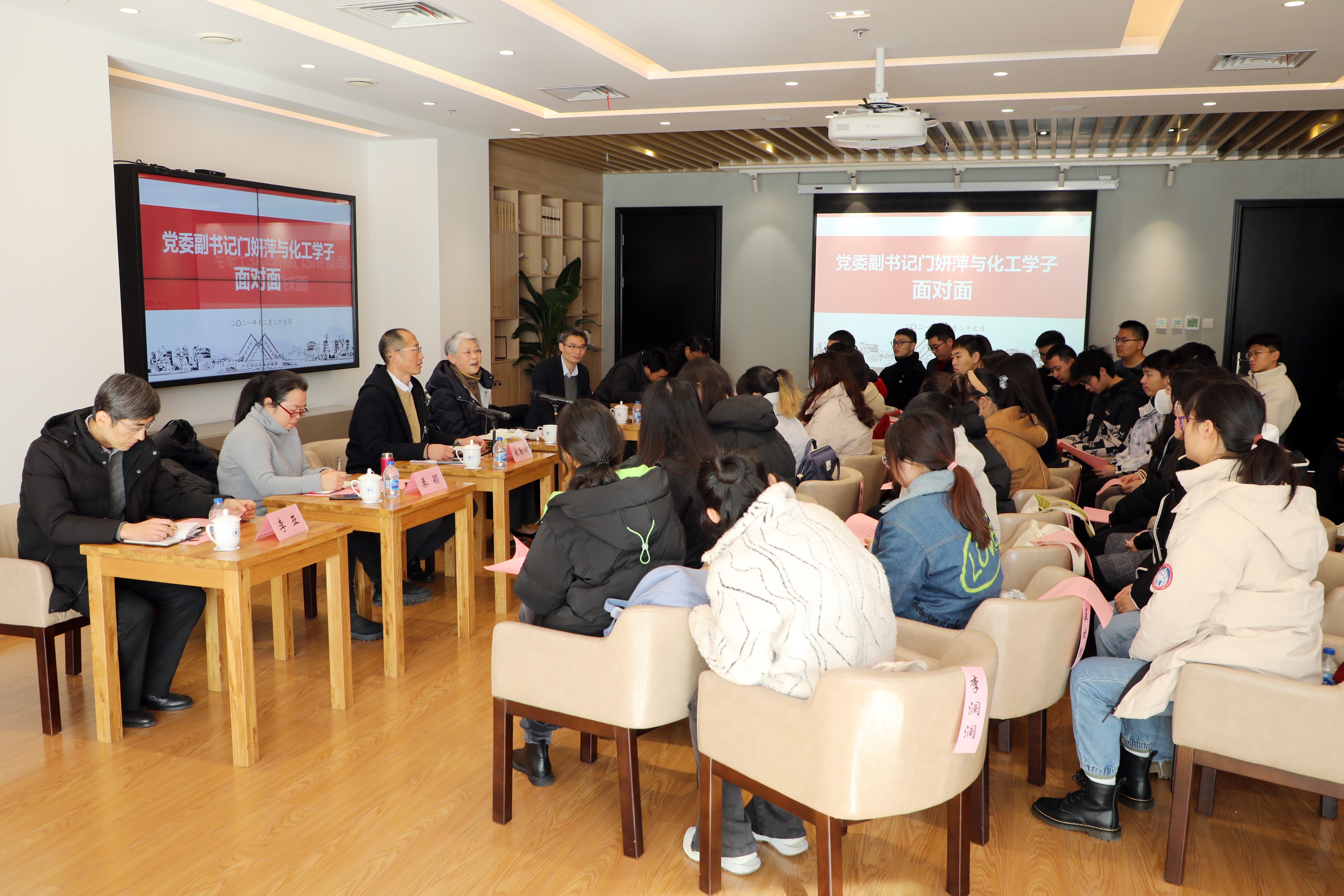 12月27日上午,公司党委副书记、纪委书记门妍萍与365英国上市集团师生面对面座谈会在行政楼文化之家召开,化学化工公司党政领导班子成员、各系主任和辅导员、2020级本科生代表共四十余人参加了座谈会,座谈会由化工公司党委书记宋勤健主持。