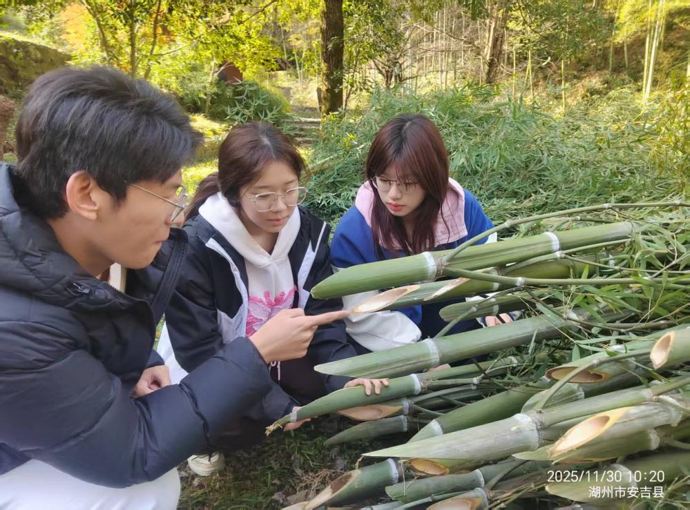 此外,师生考察了安吉大竹海、灵峰等自然与文化场所,从生态修复、水土保持、文化传承等多维度理解“两山”转化的现实案例。还结合当地丰富的竹资源,以“以竹代塑设想的可行性与环保效益”为主题,探讨了竹材在替代塑料制品减少白色污染方面的潜力,为生态产品价值实现提供了新思路。