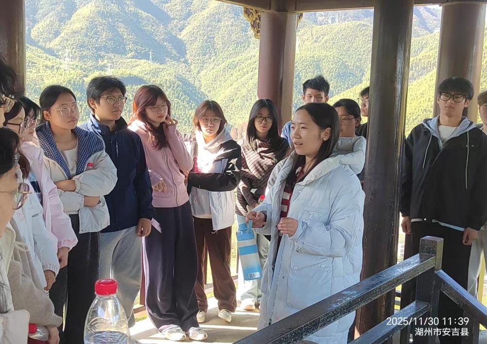 活动期间,师生首先走进“两山”理念诞生地余村,系统学习该村从“矿山经济”向“生态经济”的转型历程,同学们结合专业课程知识,在实地调研中深化了对乡村环境治理与可持续发展模式的认识。