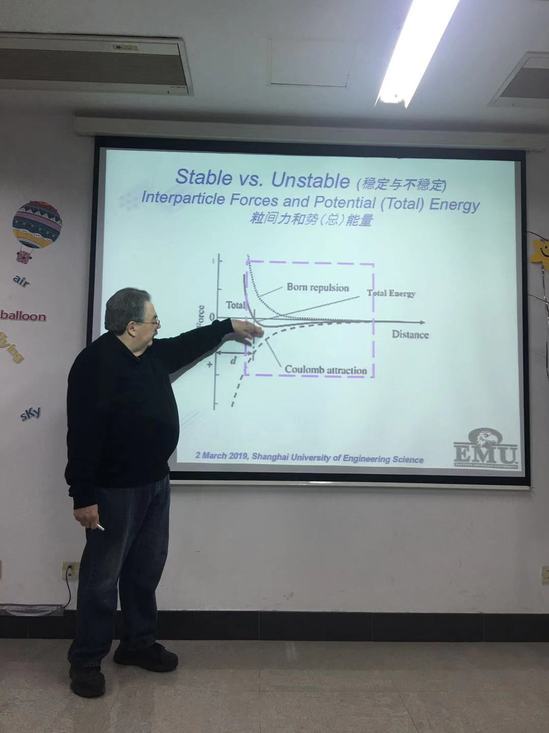 3月2日下午,世界著名涂料专家,美国东密歇根大学杰出教授John Texter应邀来校,在实训楼4号楼4405室给涂料工程专业全体师生作了《New Materials from Thermodynamically Stable Dispersions》的专题讲座,讲座由高分子材料与工程系温绍国教授主持。