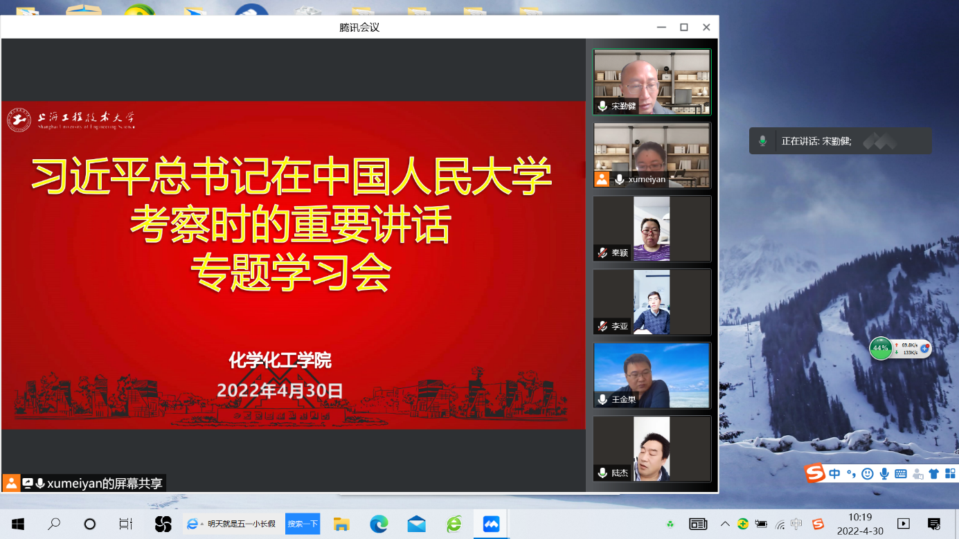 在五四青年节即将到来之际,习近平总书记到中国人民大学考察并发表重要讲话。为深入学习领会习近平总书记重要讲话精神,化学化工公司党委中心组于4月30日召开了习近平总书记在中国人民大学考察时的重要讲话专题学习会,公司全体党委委员、党政办主任和工会主席参加了会议,会议由公司党委书记宋勤健主持。