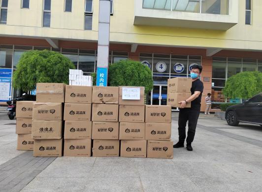 (3)爱心捐赠物资的分发员。员工日常生活用品、用餐食品、防疫物品数量大、品种多,为了能够及时、精确的将相关物品发放到每一个员工手中,张晓普老师根据公司网格化管理区域、男女生人员数量、员工家庭经济状况等制定了不同的分发方案,和志愿者一起将一箱箱物资转运到分发地点,有序发放。
