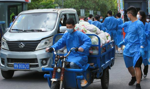(3)抗疫物资的搬运员。小区居民人员较多,抗疫物资数量较大,物资搬运成为小区疫情防控工作的重要一环,每当爱心物资和抗疫物料运达小区的时候,他总会及时出现在卸载、搬运、分发的志愿者队伍中,只为爱心物资和抗原物料能够尽快分发到居民手中。