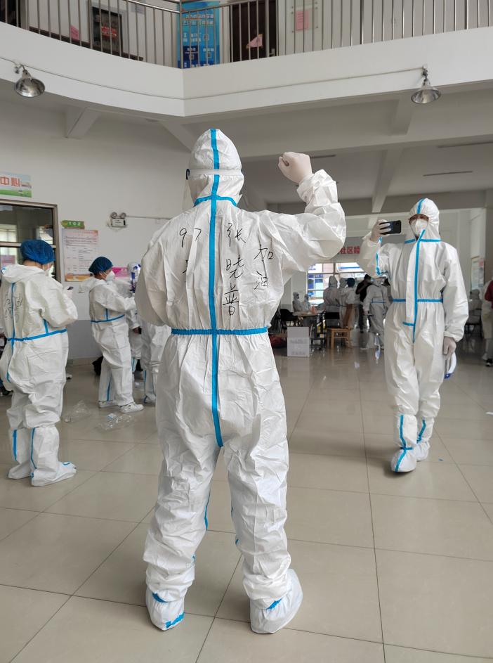小区封控之初,张晓普老师积极落实市委组织部关于党员“双报到”的工作要求,第一时间到居住地居委会报道、亮明身份,接受居委会党组织统一安排与指挥,与居委会党员干部和群众并肩作战,下沉到小区担任楼栋志愿者。