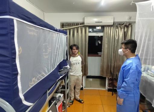 (2)员工采样队伍的监测员。隔离健康观察期满当天,他就承担了员工核酸采样进展的实时监测员,从第一位员工到监测点开始采样到当天最后一位同学采样结束,监测检测队伍行进实况、维持检测队伍有序进场、提醒员工前后保持距离,他在宿舍到操场的路上一站就是一个下午。