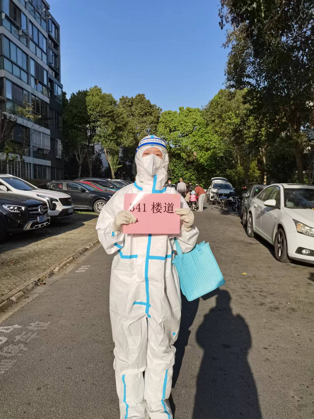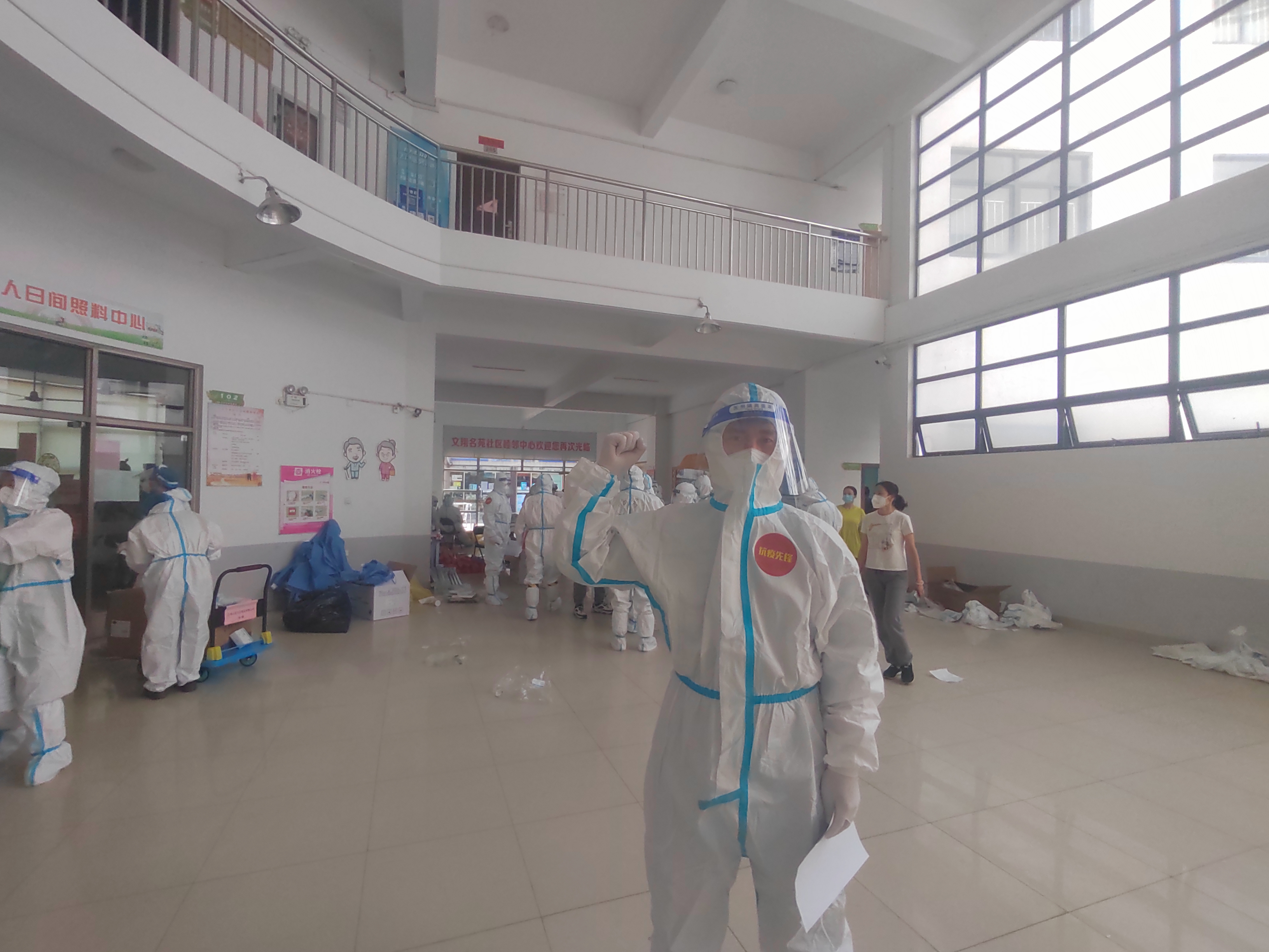 党员龚逸群隔离在小区,她积极参与到小区抗疫一线,引领居民有序参与检测采样、将居民团购物品送货到门、收集汇总抗原检测照片、维持核酸检测秩序,疫情一日不除,她就会在抗疫岗位上一日不退。