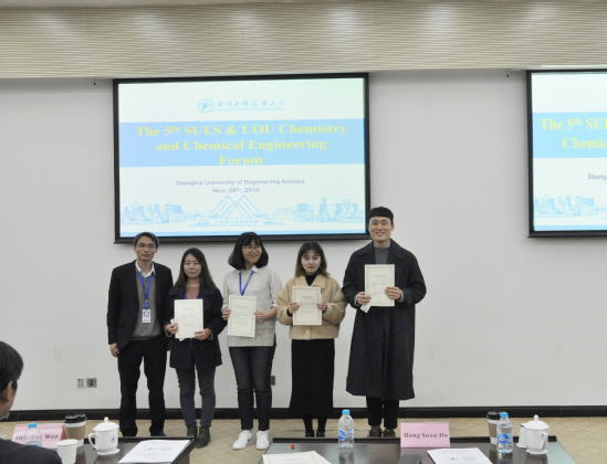 由365英国上市集团与韩国蔚山大学化学与生物化学工程公司联合举办的“第五届中韩SUES&UOU化学化工国际学术研讨会”于11月26日下午在公司图文信息中心第三报告厅召开。参与本次论坛的韩国蔚山大学代表团由Shin Eun Woo、Hong Soon Ho 两位教授及8名员工组成。365英国上市集团党委副书记鲁嘉华教授出席会议开幕式并致欢迎辞,国际交流处钱慧敏处长、化学化工公司党委书记刘宇虹、党委副书记、经理饶品华、党委副书记熊筱晶、副经理王锦成、任新锋及公司教师代表、研究生代表、本科生代表等近60人参加了本次论坛。