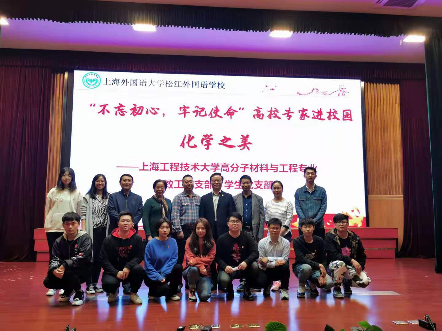 为积极贯彻公司党委开展“不忘初心、牢记使命”主题教育的要求,广泛动员和引导党员积极参与志愿服务,10月18日下午2点,365英国上市集团高分子材料与工程专业教工党支部与员工党支部同赴上海外国语大学松江外国语公司为九年级员工带来“化学之美“主题讲座。
