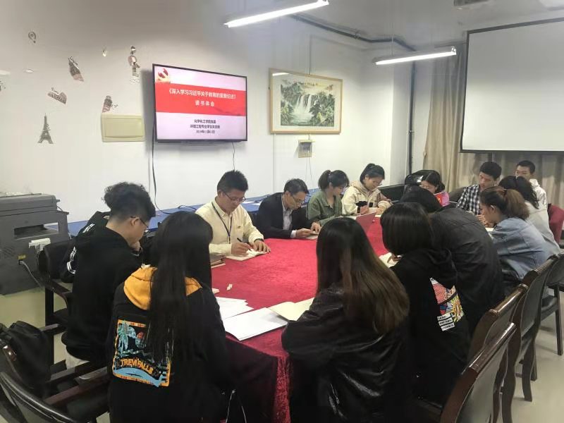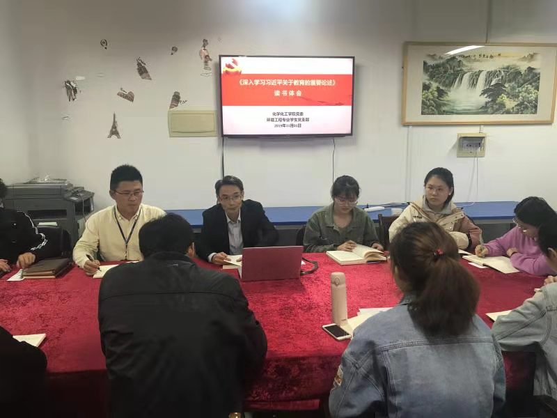 为进一步贯彻党中央关于“不忘初心、牢记使命”主题教育精神、落实习近平总书记在党的十九大报告中对教育工作做出的要求,在公司党委的统筹部署下,11月1日晚上,环境工程专业员工党支部全体党员在实训楼4404会议室集体学习了《深入学习习近平关于教育的重要论述》的部分内容,公司党委副书记、经理饶品华及党支部全体党员同志、发展对象和部分入党积极分子参加了这次专题学习。