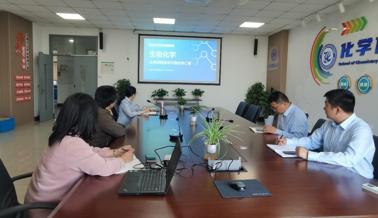 各个课程建设负责老师分别对课程建设目标、计划进度、进展情况、阶段性成果和经费使用情况等进行了汇报。王金果、陆杰、王润锴、尹小英仔细查阅了课程建设中期资料,包括教材选用、教学大纲、课程简介、课程教学PPT和线上资源等建设进度。针对本次中期检查发现的问题,结合各课程负责人所提出的重难点,公司提出了相应的建议和对策,并督促各课程负责人加快全英文课程建设的进度,以确保课程建设高质量高标准完成。