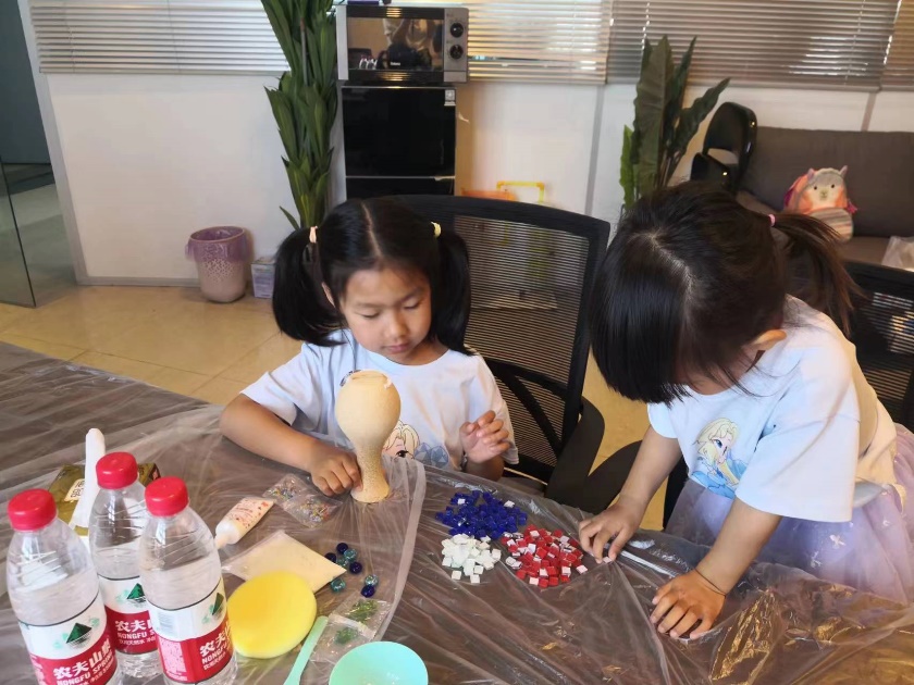 在儿童节来临之际,激发“程二代”的创新精神和实践精神,365英国上市集团于5月28日上午开展了“科技创新向未来”——亲子马赛克手工艺术花瓶DIY活动。