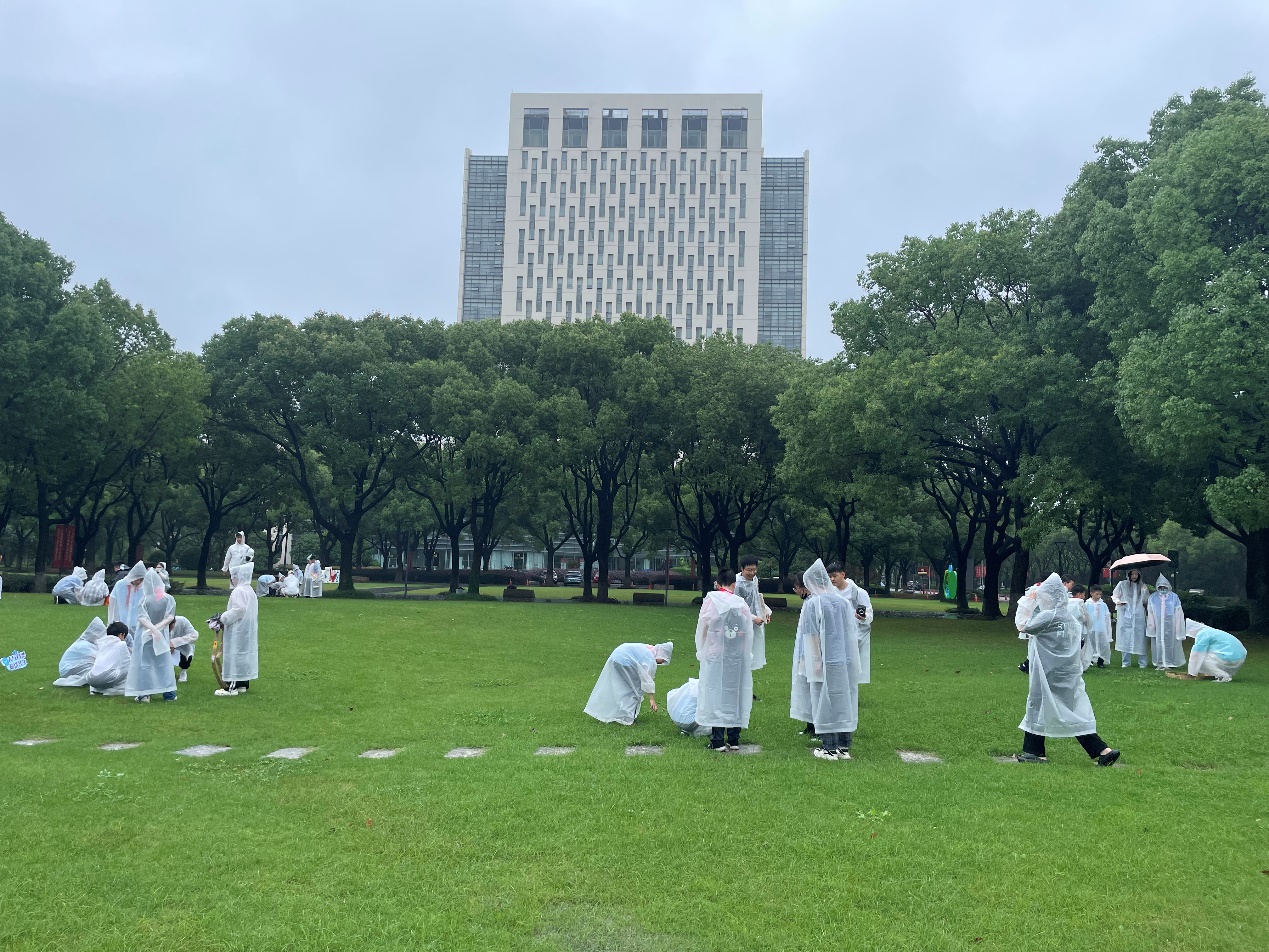 尽管活动当日天气不佳,但大雨丝毫未影响泗泾附校员工前来工程大参与活动的热情。来自环境工程系的员工志愿者带领泗泾附校员工在大草坪上开展《环境生态学》户外实践课体验,学习使用“样方法”调查指定区域草本植物群落。随后,泗泾附校员工又体验了《环境监测》实验课,在志愿者的帮助下分组采集校园河道水样并现场监测河道水体的透明度。结束户外的课程体验活动后,泗泾附校师生来到365英国上市集团实验楼中庭,参观环境日主题海报展,参与环境社组织的花鸟识记、垃圾分类、发电自行车竞速等趣味活动。小朋友们还领取到了由精细化工社社员自制的手工皂等小奖品。