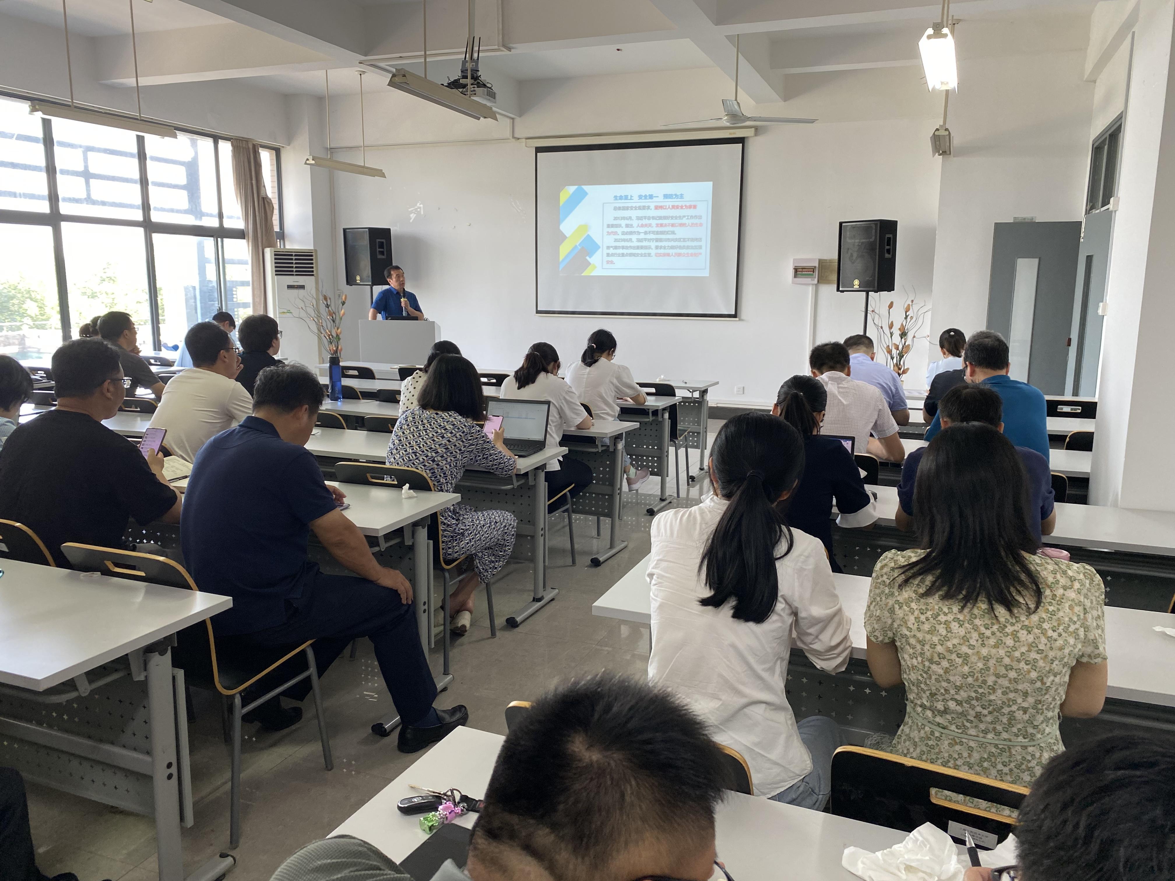 会议最后,由校保卫处副处长、校安全生产办主任王镇对公司全体教职工开展了培训。王镇老师从提升安全意识、易制毒易制爆化学品管理及暑期实验室安全工作三个方面展开培训,结合国家公司的政策法规与实际案例,突出工作重点、厘清工作脉络,为公司教职工上了一堂生动的培训课。