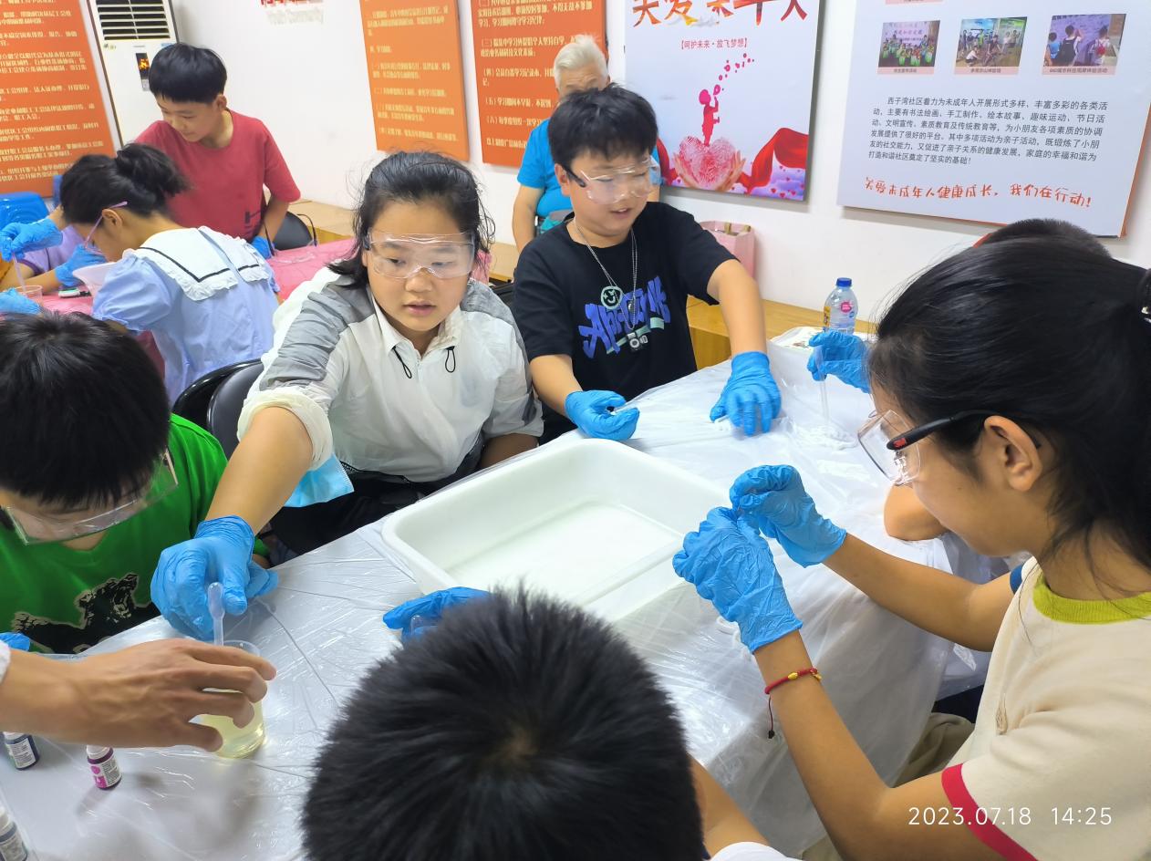 暑假,为助力居委会开展丰富多彩的中小员工进社区活动,高分子材料与工程专业教工党支部利用化学专业背景优势,结合日常生活,由支部书记王继虎带领支部党员进行活动策划,原材料购买,实验室试做,调整实验方案,现场教学,带领社区中小员工开展多彩有趣的环保型化学实验,讲解基本化学原理,探秘神奇的化学世界,系列活动得到了居民们的一致好评。