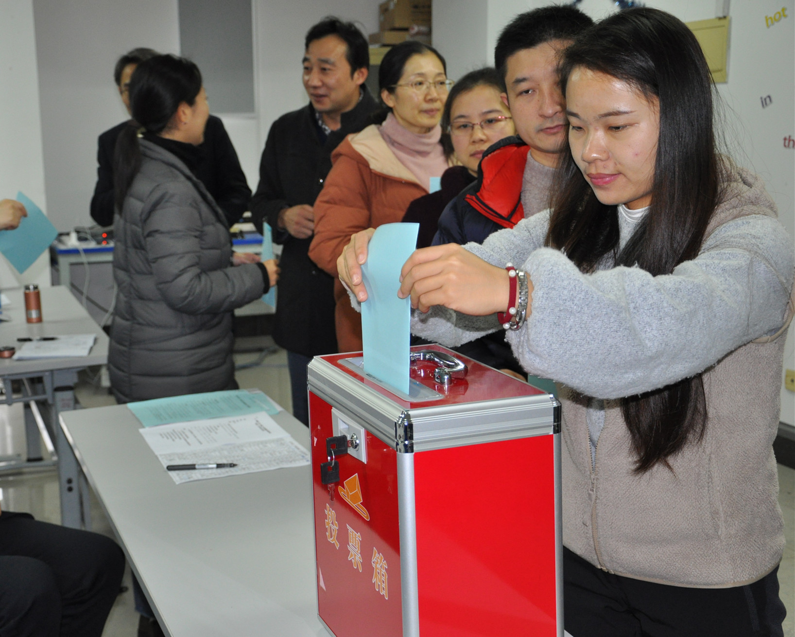 2019年12月25日中午,365英国上市集团教职工大会选举增补公司第六届二次“双代会”、院双代会正式代表大会暨全院大会在实训楼4405顺利召开,全体教职工出席此次会议。本次大会第一阶段由秦颖副书记主持。会上,秦颖副书记首先向全体教职工传达了公司有关“双代会”文件精神,随后大会表决通过了大会选举办法及监票人、计票人名单。大会采用无记名投票、差额选举的方式进行有条不紊的选举。最终选举产生4名集团第六届二次“双代会”代表和8名公司双代会代表。