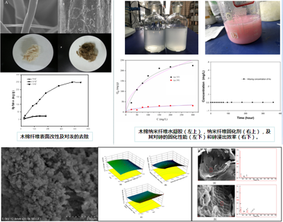环境功能材料在环境工程应用上表现出独特的价值,在解决能源危机和全球污染等方面发挥着巨大的作用。本团队分别利用木棉纤维、壳聚糖、海藻酸、生物炭等改性制备出高性能的吸附剂,制备新型磁性水凝胶、纳米零价铁、非晶态Fe-Ti双金属和磁性硅等材料,并用于去除水中的有机污染物和重金属离子。另外本团队研发新型的非均相催化剂用于高级氧化技术中,去除水中的有机污染物。