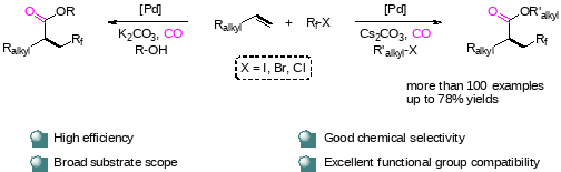 1.Palladium-Catalyzed Perfluoroalkylative Carbonylation ofUnactivated Alkenes: Access to β-Perfluoroalkyl Esters. Youcan Zhang, Hui-QingGeng, Xiao-Feng Wu. Angewandte Chemie International Edition, 2021, 60, 24292–24298. (IF = 16.6, SCI:一区)