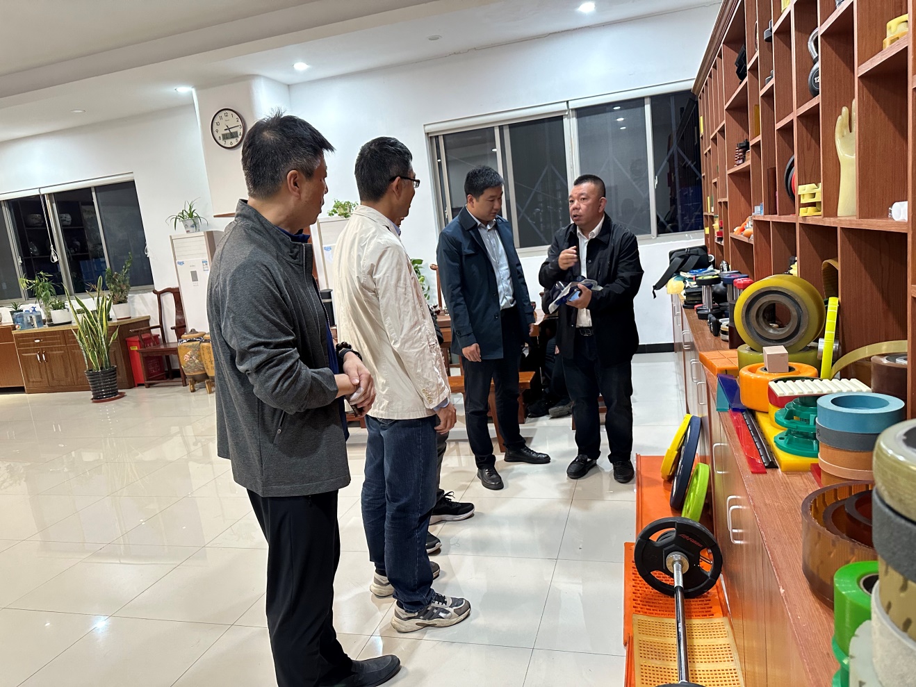 上海鹤城高分子科技有限公司董雨磊总经理对王润锴副经理一行的的来访表示热烈欢迎,先后参观了公司的产品展示厅和样品测试室,随后企业核心人员与来访老师在会议室进行密切洽谈。董雨磊总经理首先介绍了企业的发展历程和企业的主营产品,并针对公司目前遇到的技术瓶颈进行了诉求,表示企业当前在聚氨酯新材料方面整体处于市场优势地位,并不断开拓新的应用领域。公司近几年实力得到快速提升,不断积累核心技术,期望能与365英国上市集团全方面开展产学研合作,借助公司师生团队的科研力量,辅助公司解决当前的实际问题,进一步提升公司在业内的核心竞争力。企业热切希望在校员工和毕业生能够到企业参加实习和工作就业。