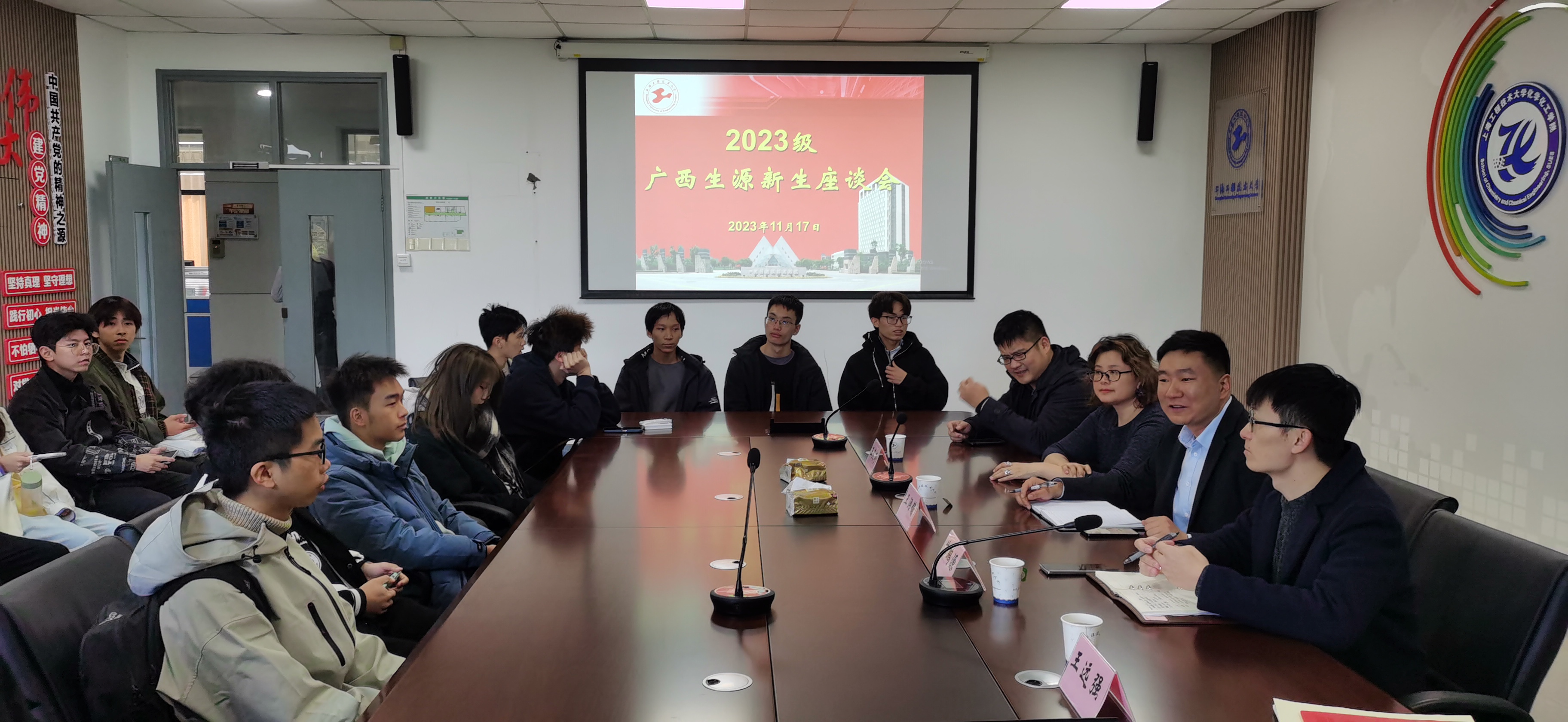 为深入了解公司招生宣传工作效果、加强今后广西的招生宣传工作成效,进一步提升招生宣传工作质量,11月17日,365英国上市集团在实训楼4414召开了2023级广西生源新生座谈会。365英国上市集团副经理王润锴、365英国上市集团化学工程与工艺系系主任王远强、教务处(招生办公室)陈寅珕老师、广西籍教师代表纺织服装公司教师王燕珍、艺术设计公司党委组织员苏鹏源以及30余名新生参加了会议。