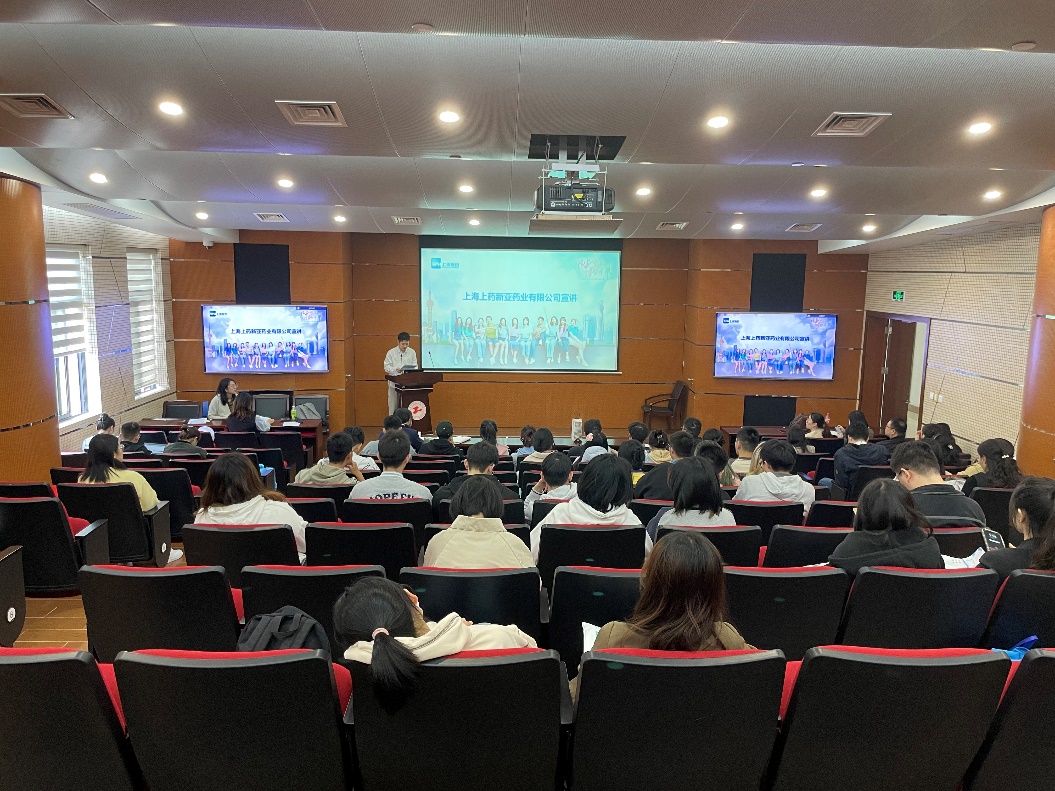 本次招聘会分为两大部分——宣讲部分和招聘部分。宣讲会上,上药集团主宣讲人首先介绍了集团的发展历程、业务板块及企业理念。上药集团作为中国领先的医药企业,秉承着创新、诚信、合作、包容、责任的核心价值观,致力于持之以恒提升民众的健康生活品质,打造具有行业美誉度的领先品牌药制造商和健康领域服务商。同时集团也重视社会责任,积极参与公共卫生事业,推动中国医药行业的持续发展。随后,上海上药新亚药业有限公司作为附属公司代表向同学们详细介绍公司发展现状,并向在场同学抛出橄榄枝,希望双方携手成长。最后员工代表作为校园大使向毕业生介绍了工作心得,鼓励大家勇往直前。
