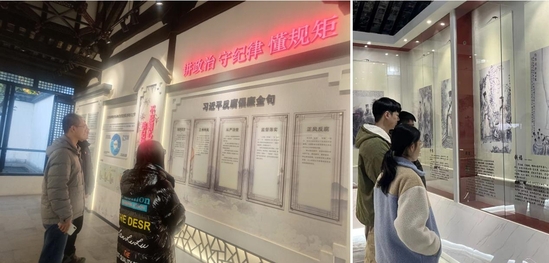 “一壁、一堂、一廊、一轩、一馆”构成了松江方塔园廉政教育基地。同学们在张燕黎老师带领下,参观了贪欲警示砖刻照壁、厉廉堂、廉政文化走廊、养德轩及反腐倡廉警示教育馆等。大家驻足观看,通过廉政人物、廉吏格言与廉政小故事,了解了古代清官廉吏的先进事迹和近现代革命建设时期的英烈、贤达和劳动模范的事迹,感受其以法养廉、以廉养德的理念。在欣赏历史文人的勤廉故事中体味做人、处事的真谛;在反面案例警示教育中提醒自身要常思贪欲之害、常怀律己之心。研究生党员与本科生团员进行了心得体会讨论,帮助青年老员工树立正确的世界观、权力观、事业观,做有理想、有担当、能吃苦、肯奋斗的新时代好青年。