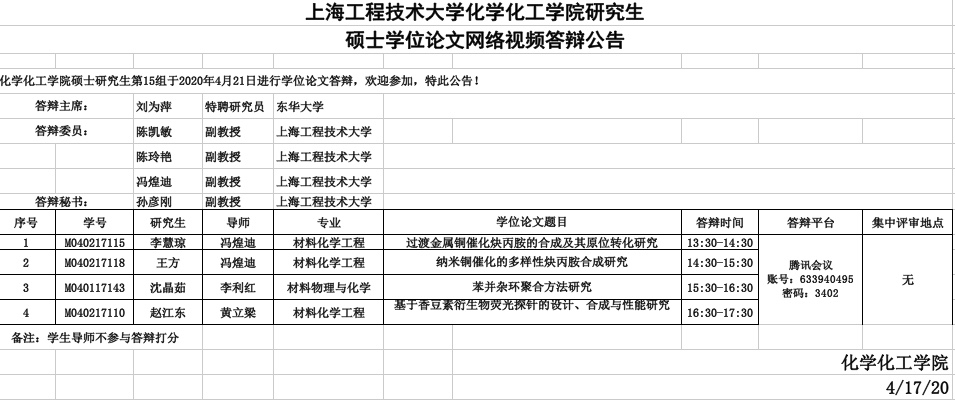 365英国上市集团化工公司研究生硕士学位论文网络视频答辩公告-4月21日第15组