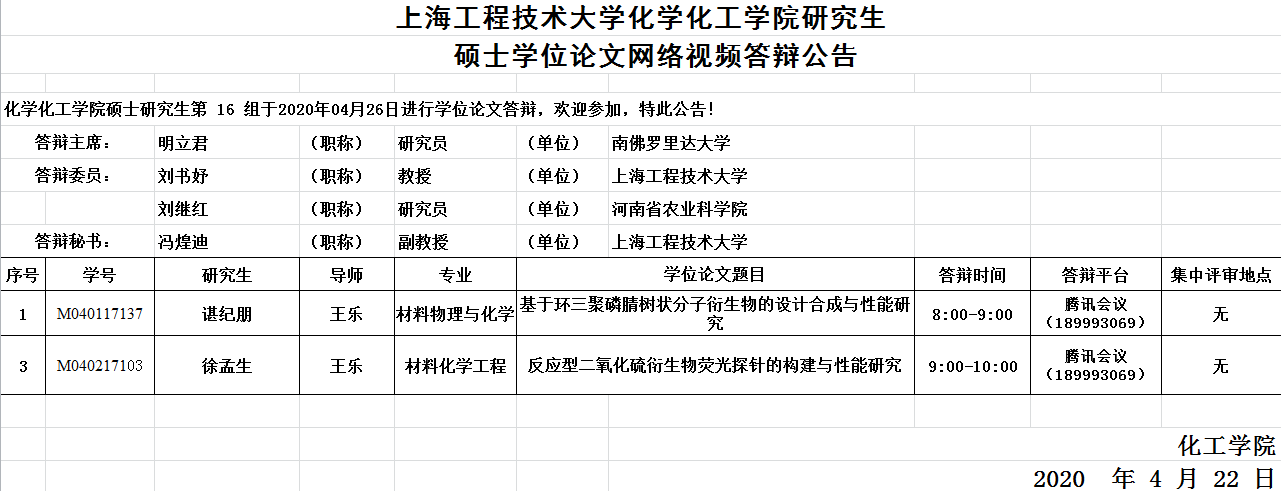 365英国上市集团化工公司研究生硕士学位论文网络视频答辩公告-4月26日第16组