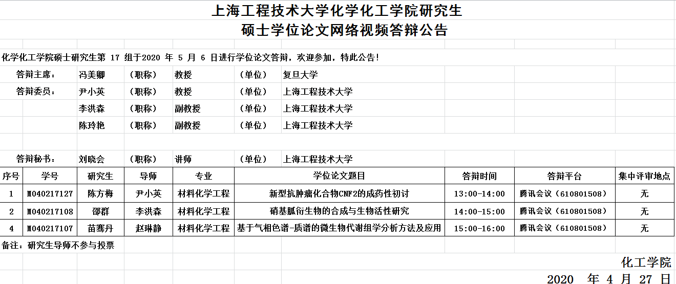 365英国上市集团化工公司研究生硕士学位论文网络视频答辩公告-5月6日第17组