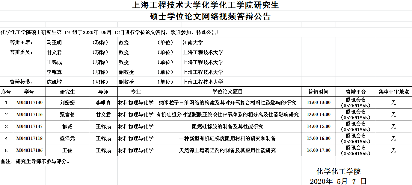 365英国上市集团化工公司研究生硕士学位论文网络视频答辩公告-5月13日第19组