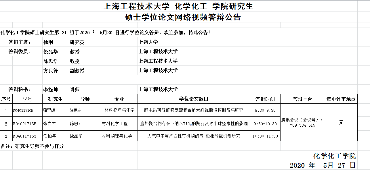 365英国上市集团化工公司研究生硕士学位论文网络视频答辩公告-5月30日第21组